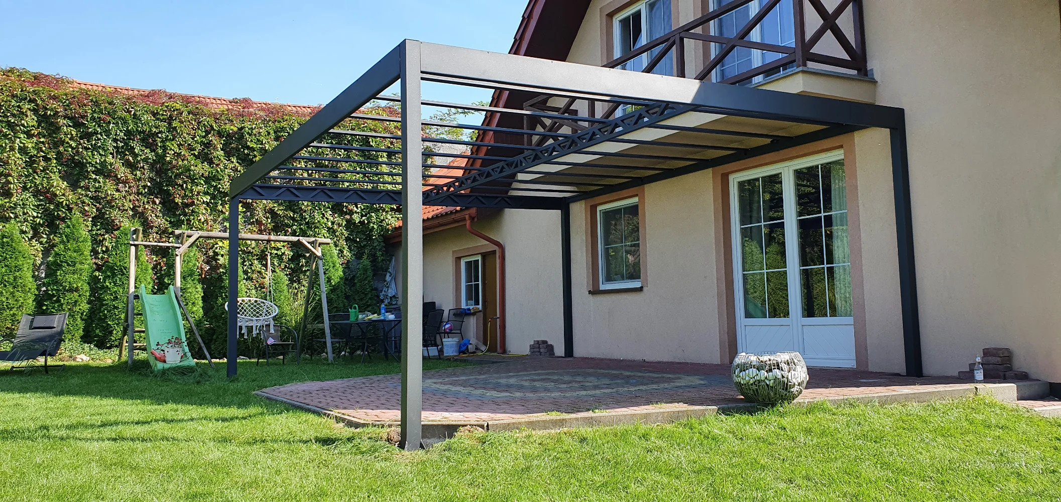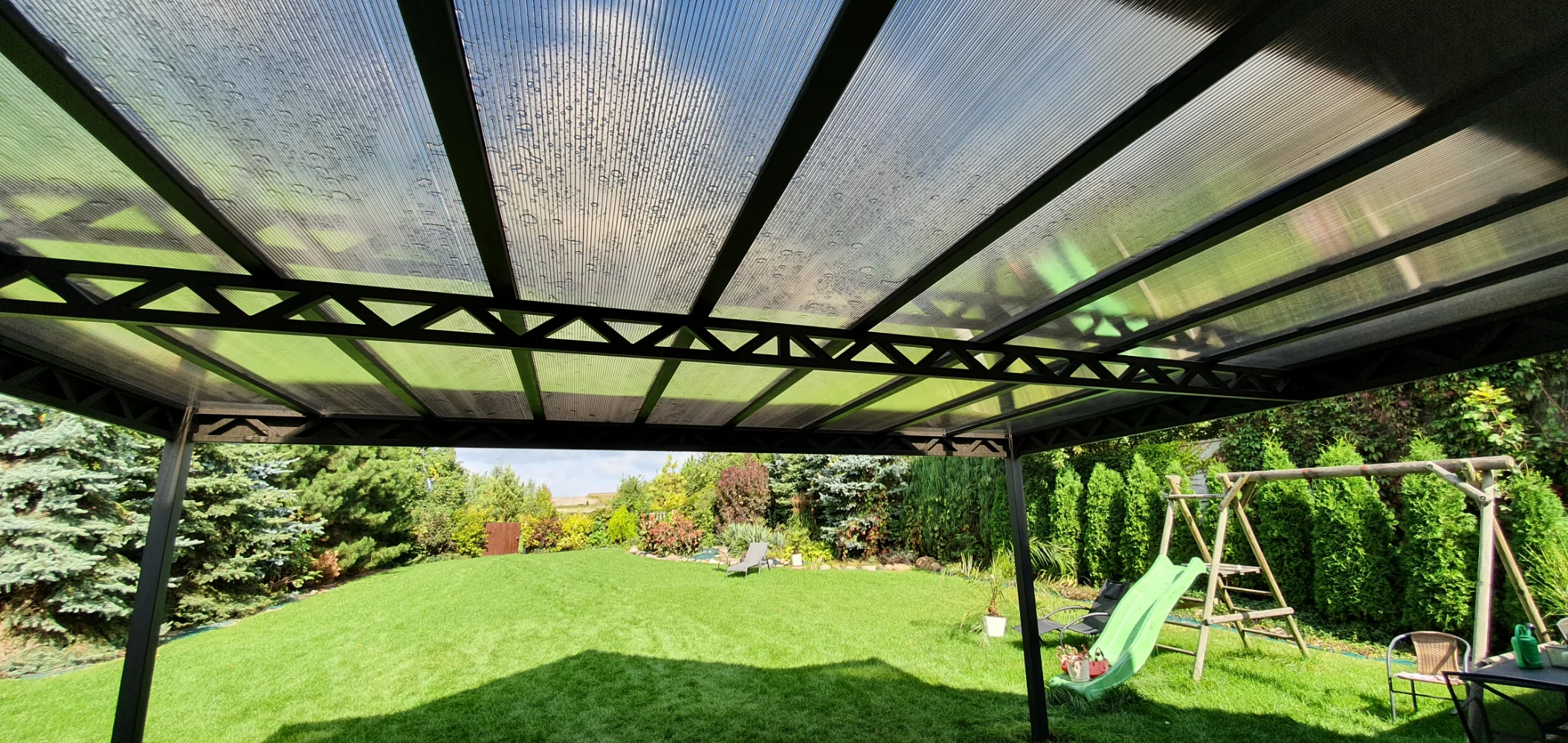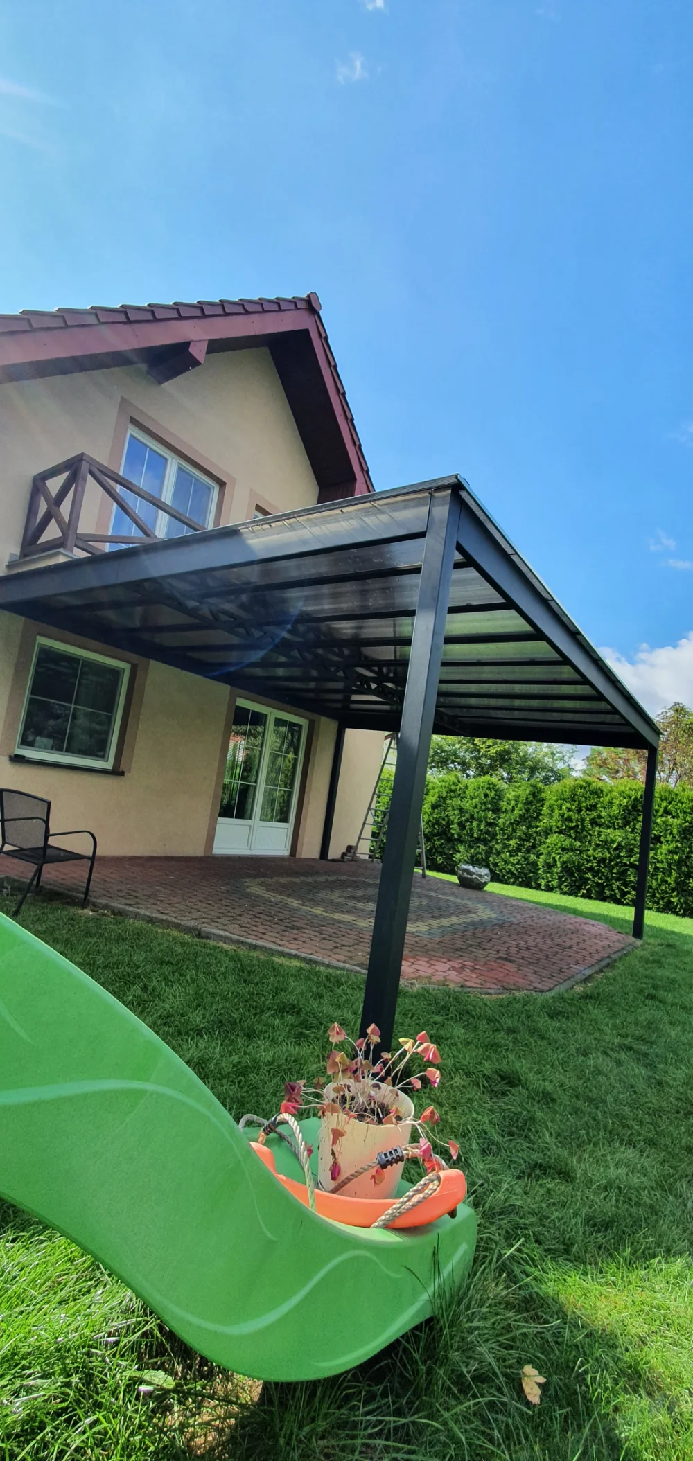 Pergola tarasowa z poliwęglanowym zadaszeniem