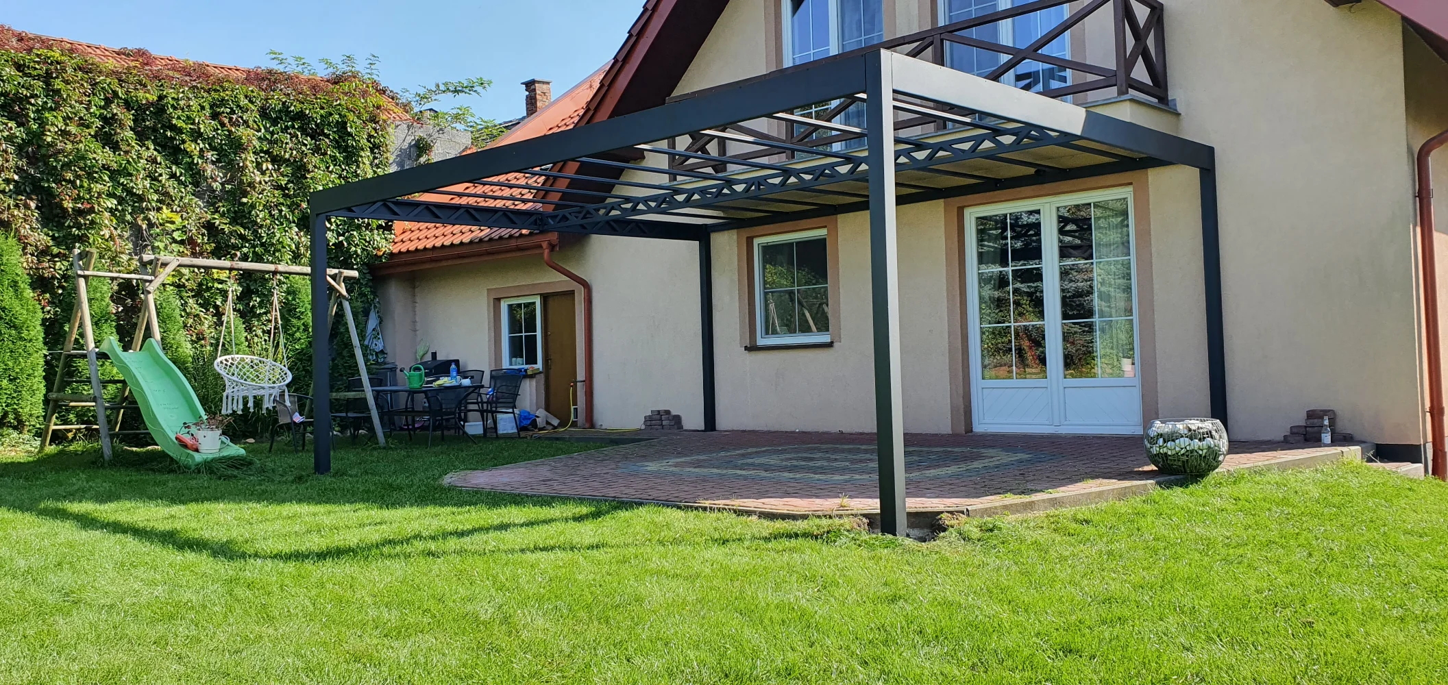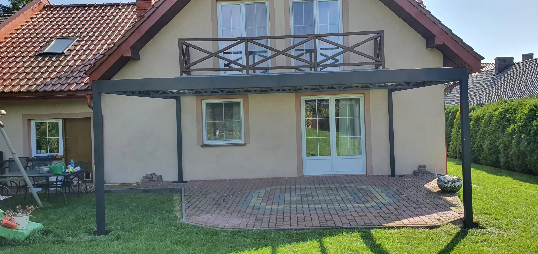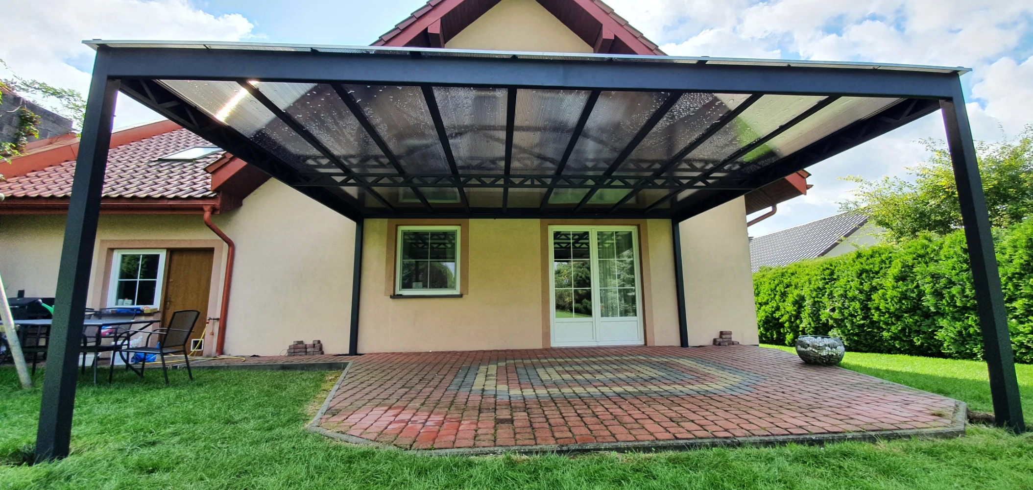 Pergola tarasowa z poliwęglanowym zadaszeniem