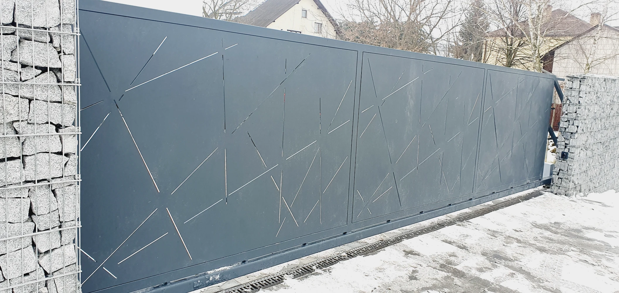 Brama i furtka CNC z geometrycznym motywem linii