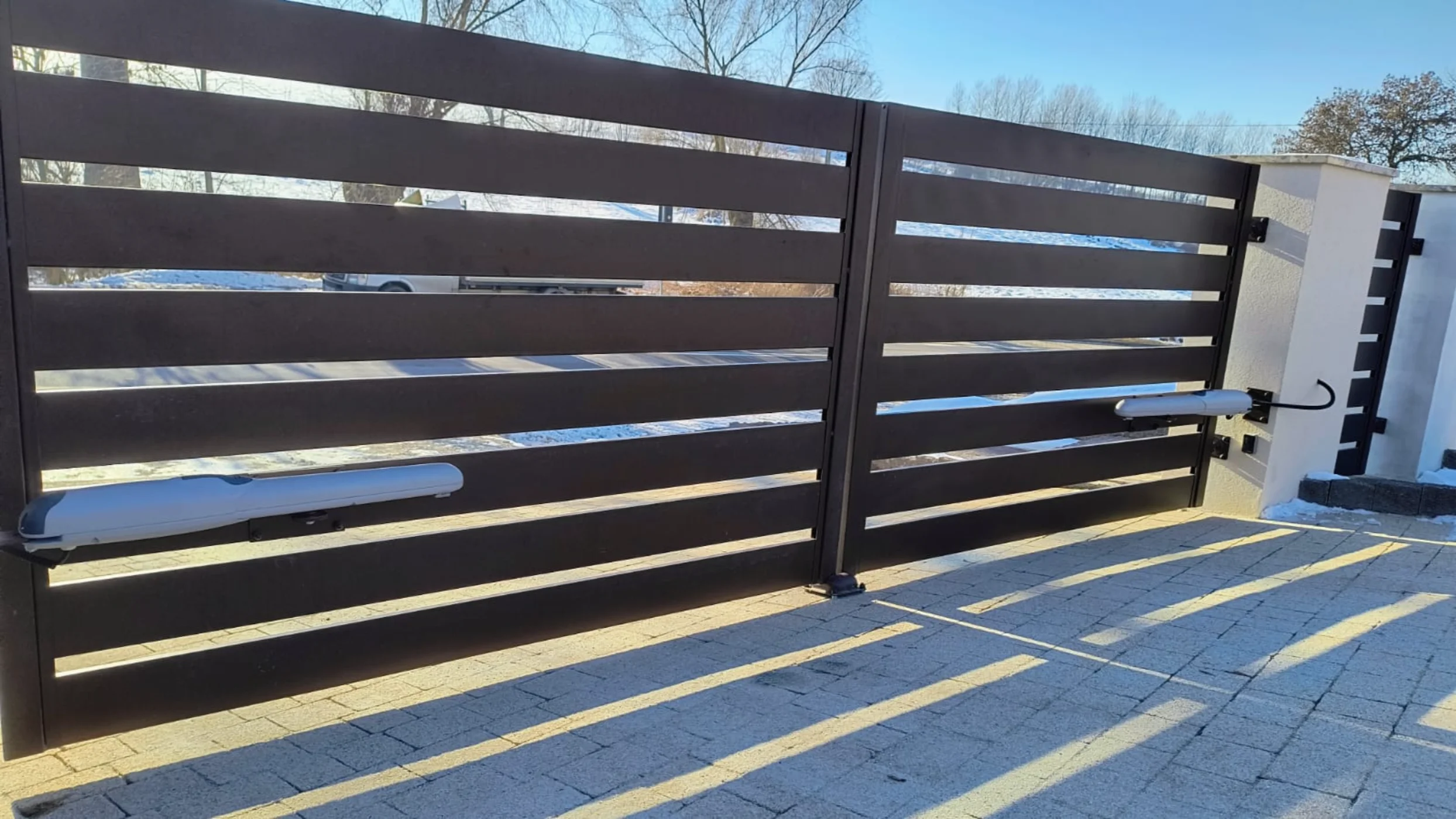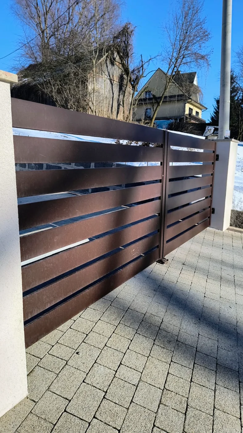 Brama skrzydłowa z automatyką, poziomy układ paneli