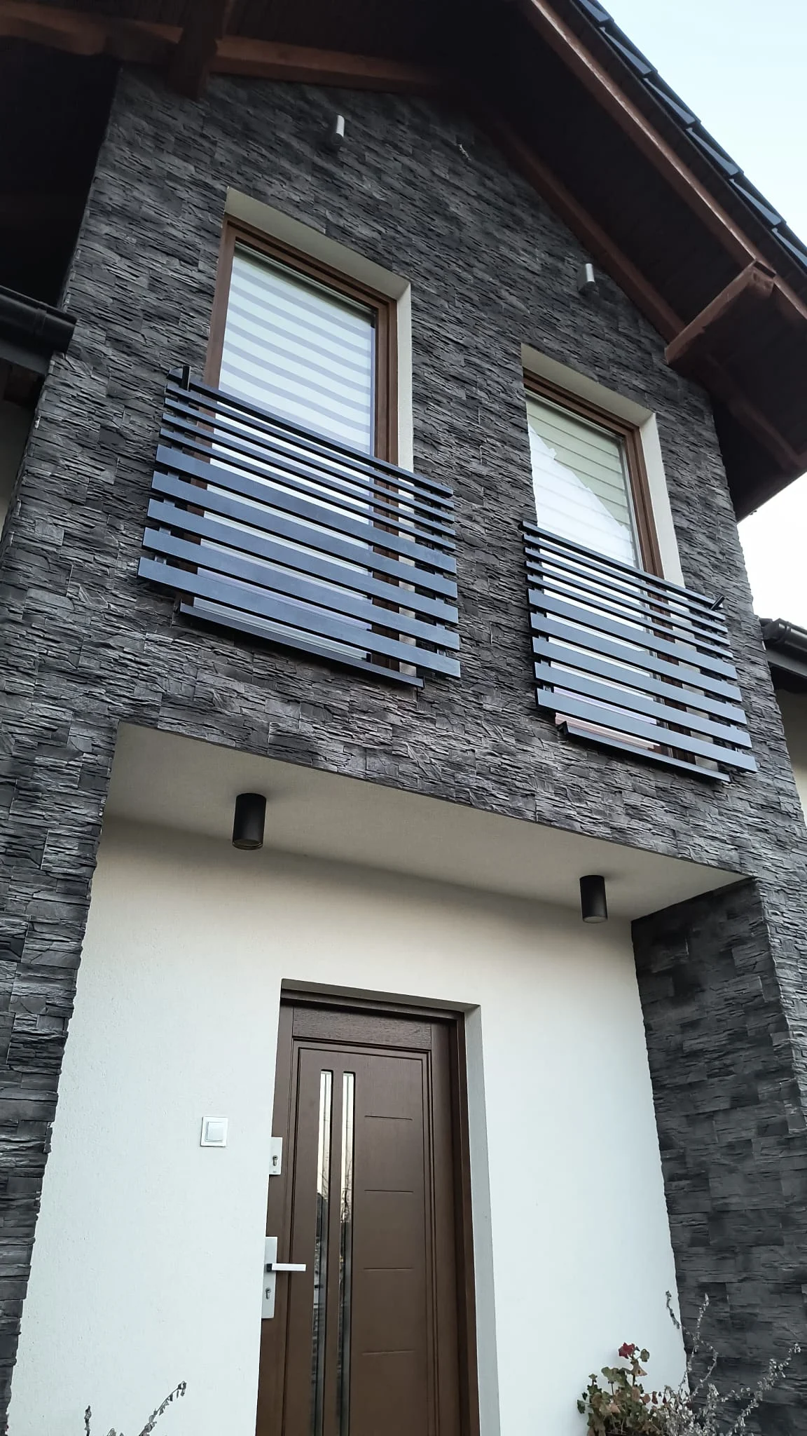 Komplet balustrad francuskich i balkonowych z poziomych profili stalowych