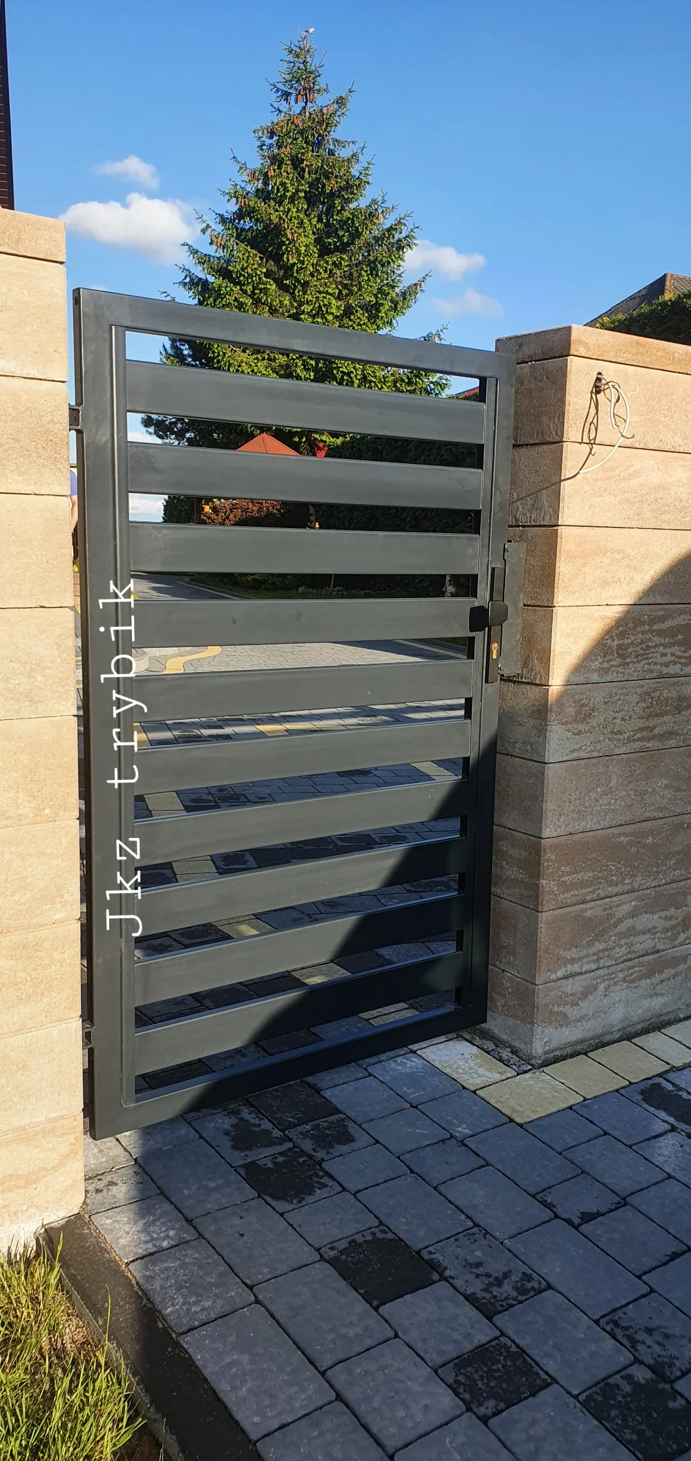 Ogrodzenie palisadowe z bramą i furtką osadzone na bloczku piaskowym